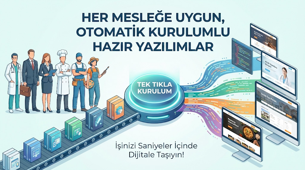 Sektörünüze özel, modern tasarımlı ve yönetim panelli web yazılımları ile dijital dönüşümünüzü hemen başlatın. Kurulum, hosting ve teknik destek bizden.